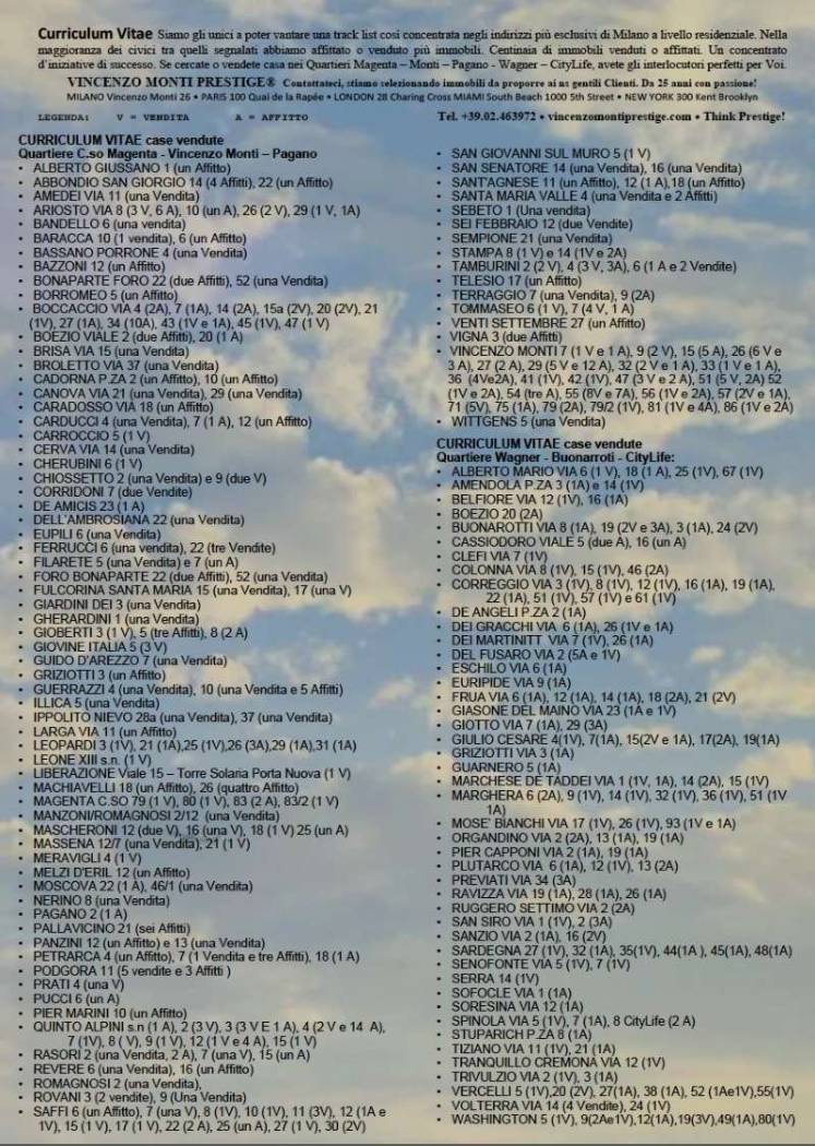 VINCENZO MONTI PRESTIGE® MILANO AGENCY MONTI - Via Vincenzo Monti 26 - 20123 Milano - MM Cadorna tel. (+39).02.463972 - fax (+39).02.43400684 - monti@vincenzomontiprestige.it